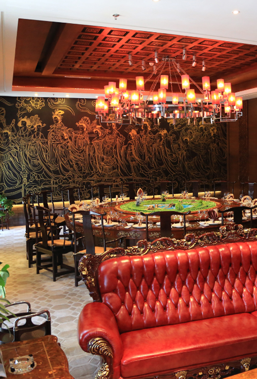 宴天下大酒店定位以商务宴请及中档宴席为主,在充分挖掘河洛菜品精髓的同时,聘请资深名厨经营粤菜、精品川菜、杭帮菜等,可满足不同口味客人的需求,着重突出天然、绿色、人文、健康的饮食理念。酒店一层为主题大堂及商务简餐,装修风格既厚重古朴又时尚简约,各类灯饰、彩绘壁画、精雕石刻无不体现出浓厚的河洛风情。二层为宴会大厅及商务包间,可同时接待近600人就餐;作为洛阳第一家全数码演艺多功能宴会厅,它采用了超前的设计理念,融合了演艺厅及星光大道的时尚氛围。三层为38间各具特色、情调迥异的豪华雅间。......