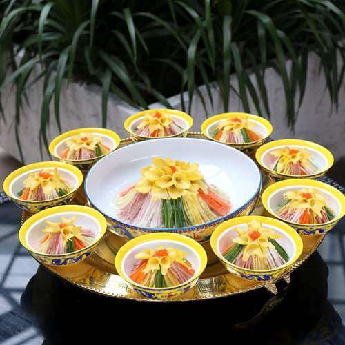水席园旗舰店由一个可同时接待近400人就餐的大型宴会厅、一个可接纳100人就餐的小型宴会厅和31个风格各异的雅间组成,它既保留了水席园水席用汤讲究、配头精致的精髓,同时在突出水席园风味特色的同时,还推出粤、湘、川及私房菜等深受大众喜爱的各色菜品,以及全聚德烤鸭、红子鸡、黄河大鲤鱼等洛阳餐旅集团的几十道贯标菜,真正做到走进一店,吃遍天下。