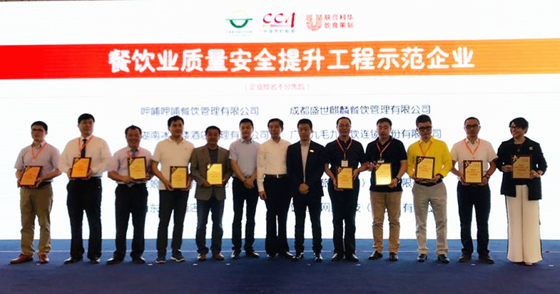 ▲餐饮业质量安全提升工程示范企业代表上台受奖