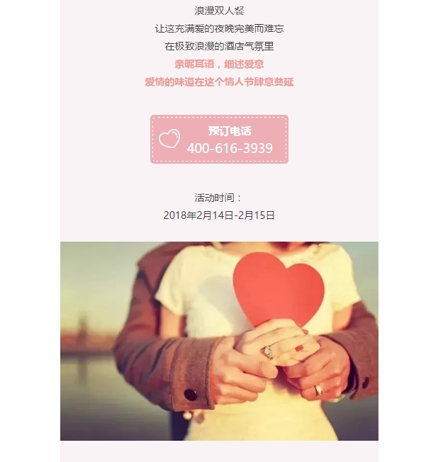 亲昵耳语,细述爱意 浪漫双人餐为你诠释幸福味道 发布时间:2018-02-13来源:点击:2424 洛阳餐旅 宴会专家全国预订客服热线:400-616-3939微信号:hacyly股票代码:836977长按二维码识别后添加关注以上信息来源于洛阳餐旅集团官网:www.allenresha.com 分享到:0 用手机看 拍下二维码,信息随身看 试试用微信扫一扫,在你手机上继续观看此页面。 上一篇:洛阳市餐饮与饭店行业协会2018新年盛典隆重举行 下一篇:春节不回家,只为守护更多的团聚和幸福!
