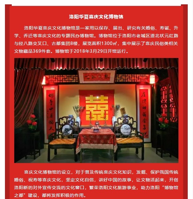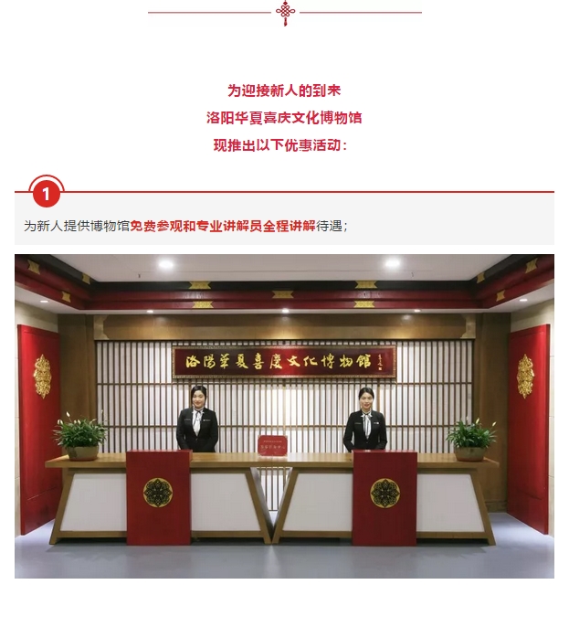 新人有礼 | 洛阳华夏喜庆文化博物馆邀您共享 发布时间:2018-07-30来源:点击:2551 洛阳餐旅 宴会专家全国预订客服热线:400-616-3939微信号:hacyly股票代码:836977长按二维码识别后添加关注以上信息来源于洛阳餐旅集团官网:www.allenresha.com 分享到:0 用手机看 拍下二维码,信息随身看 试试用微信扫一扫,在你手机上继续观看此页面。 上一篇:三伏天,宴天下老城店为一线交警送“清凉” 下一篇:洛阳餐旅旗下酒店“准新人”走进华夏喜庆文化博物馆参观