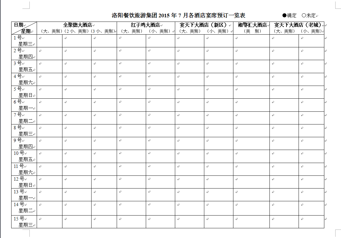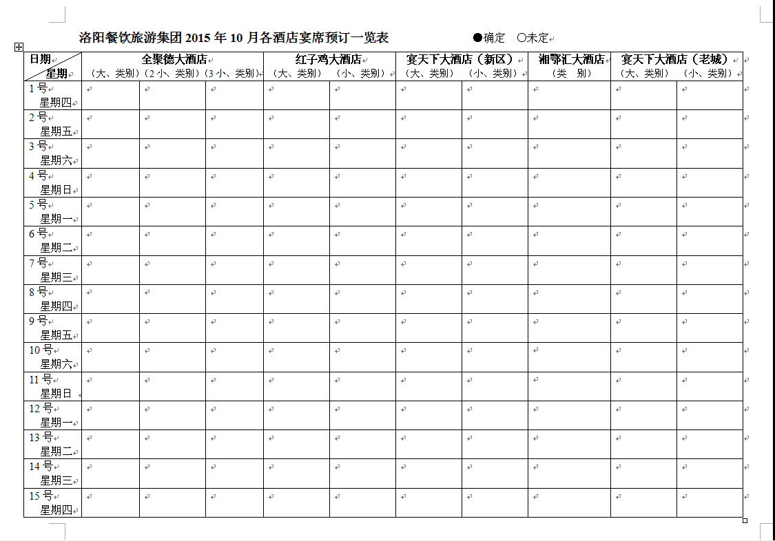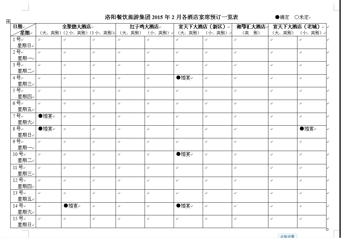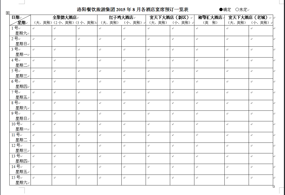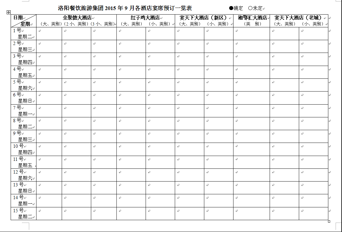 洛阳餐饮旅游集团2015年1月-12月各酒店宴席预定一览表 发布时间:2014-04-28来源:点击:2542 分享到:0 用手机看 拍下二维码,信息随身看 试试用微信扫一扫,在你手机上继续观看此页面。 上一篇:洛阳餐饮旅游集团2015年1月-12月各酒店宴席预定一览表 下一篇:集团公司荣获“洛阳市***受市民喜爱的特色餐饮企业”殊荣