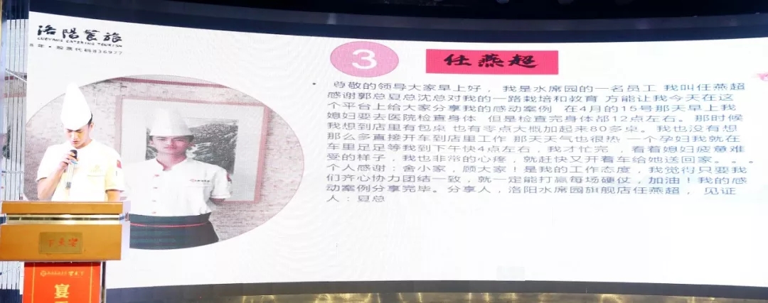 5月22日上午,宴天下新区店热闹非凡,洛阳餐旅实业第20期“一情二用心”活动总结表彰大会在这里举行。公司行政总厨卢跃青、副总经理闫利辉等管理人员出席大会,各子公司总经理和员工代表200余人参加表彰活动。