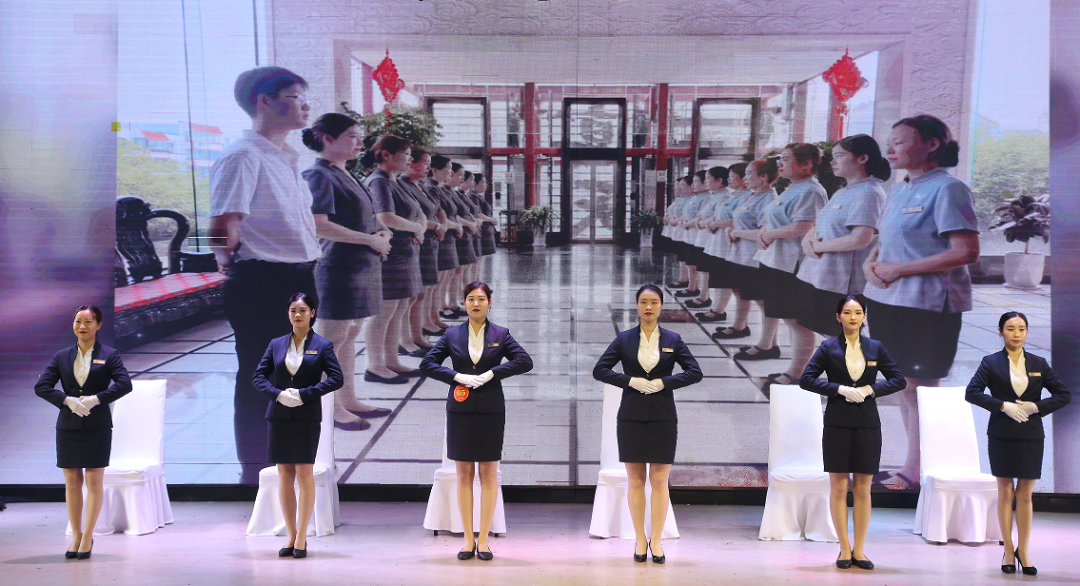 参赛者以饱满的热情,全力参赛。上午进行了前厅管理形象礼仪、T台形象、安保团队展示,来自各店的参赛者身着职业装,自信登场,展现职业技能,体现日常工作的点滴。